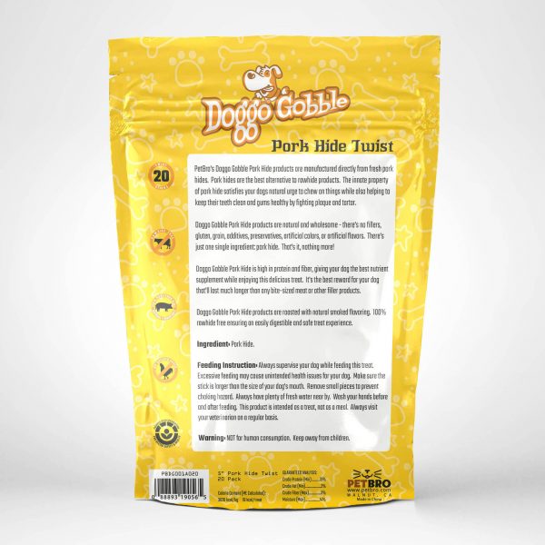 PetBro’s Doggo Gobble Pork Hide products are manufactured directly from fresh pork hides. Pork hides are the best alternative to rawhide products. The innate property of pork hide satisfies your dogs natural urge to chew on things while also helping to keep their teeth clean and gums healthy by fighting plaque and tartar.