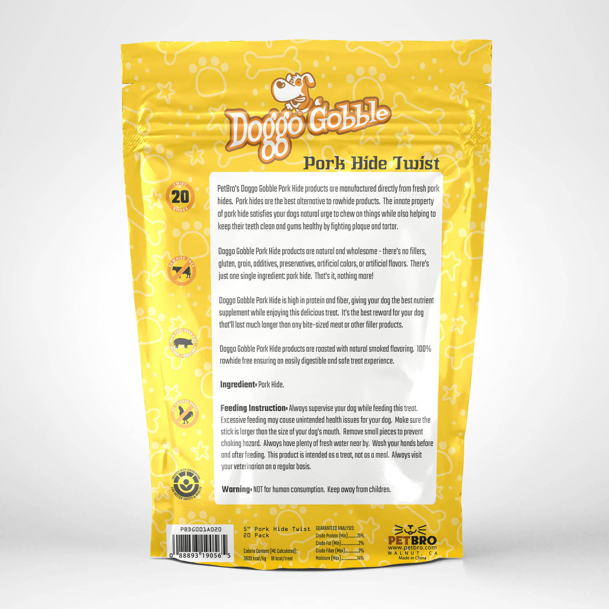 Doggo Gobble Porkhide 5-inch Twist Sticks – 20 Pack