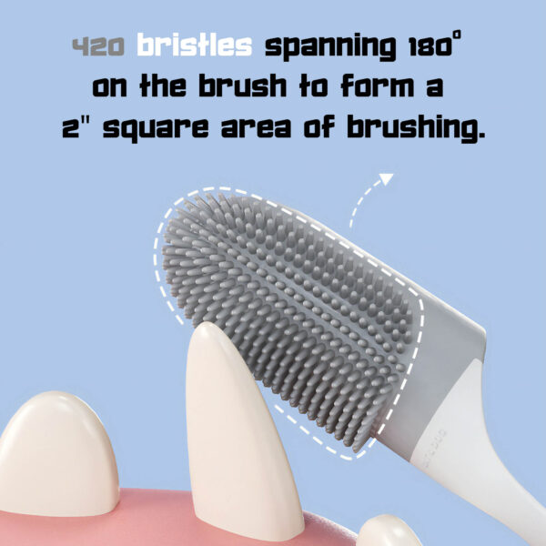 • Firm Bristle Action: 420 densely-packed TPR bristles gently clean teeth and massage gums without scratching or irritating your pet’s mouth.  2″x2″ bristle area makes brushing easy.